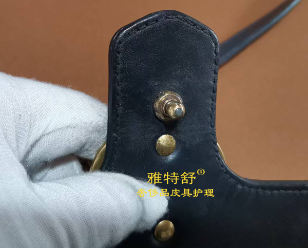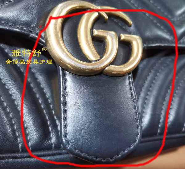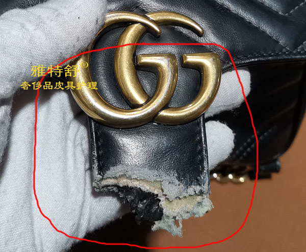 - GUCCI黑色皮包盖舌头被狗咬断配皮接补